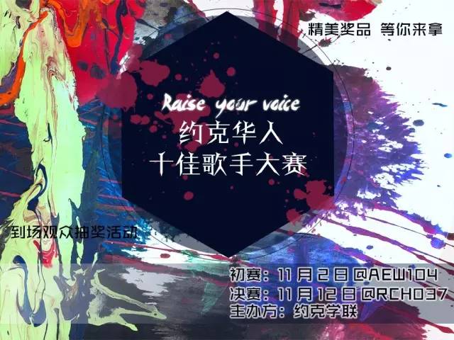 一年一度的约克十佳歌手大赛如约而至,这个赛季中选手们又会用怎样的歌声带给我们惊喜呢?这个11月,快用你们的歌声来正征服校园吧!